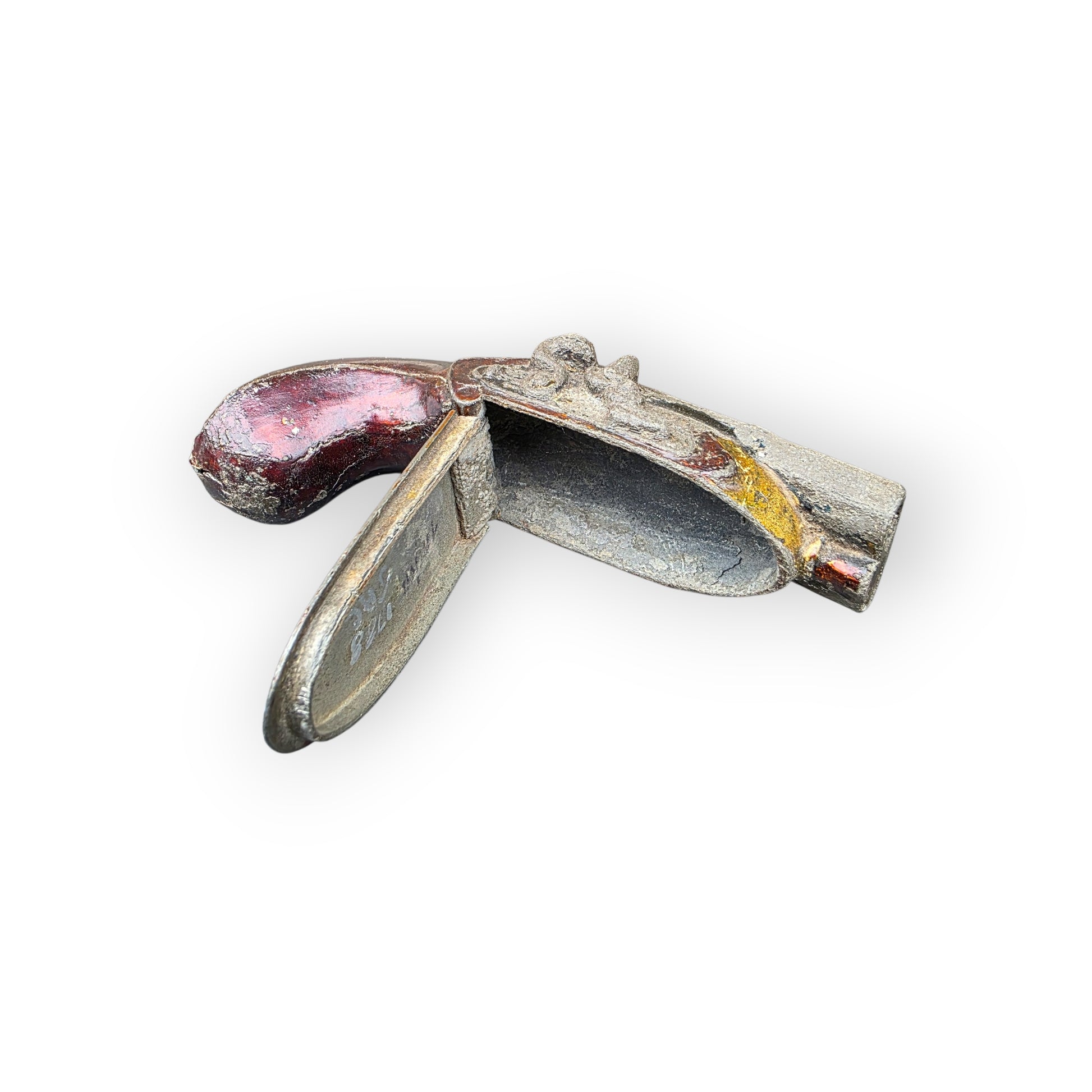 Late 18th Century George III Period English Antique Pewter Snuff in the Form of a Double-Barrelled Flintlock Pistol