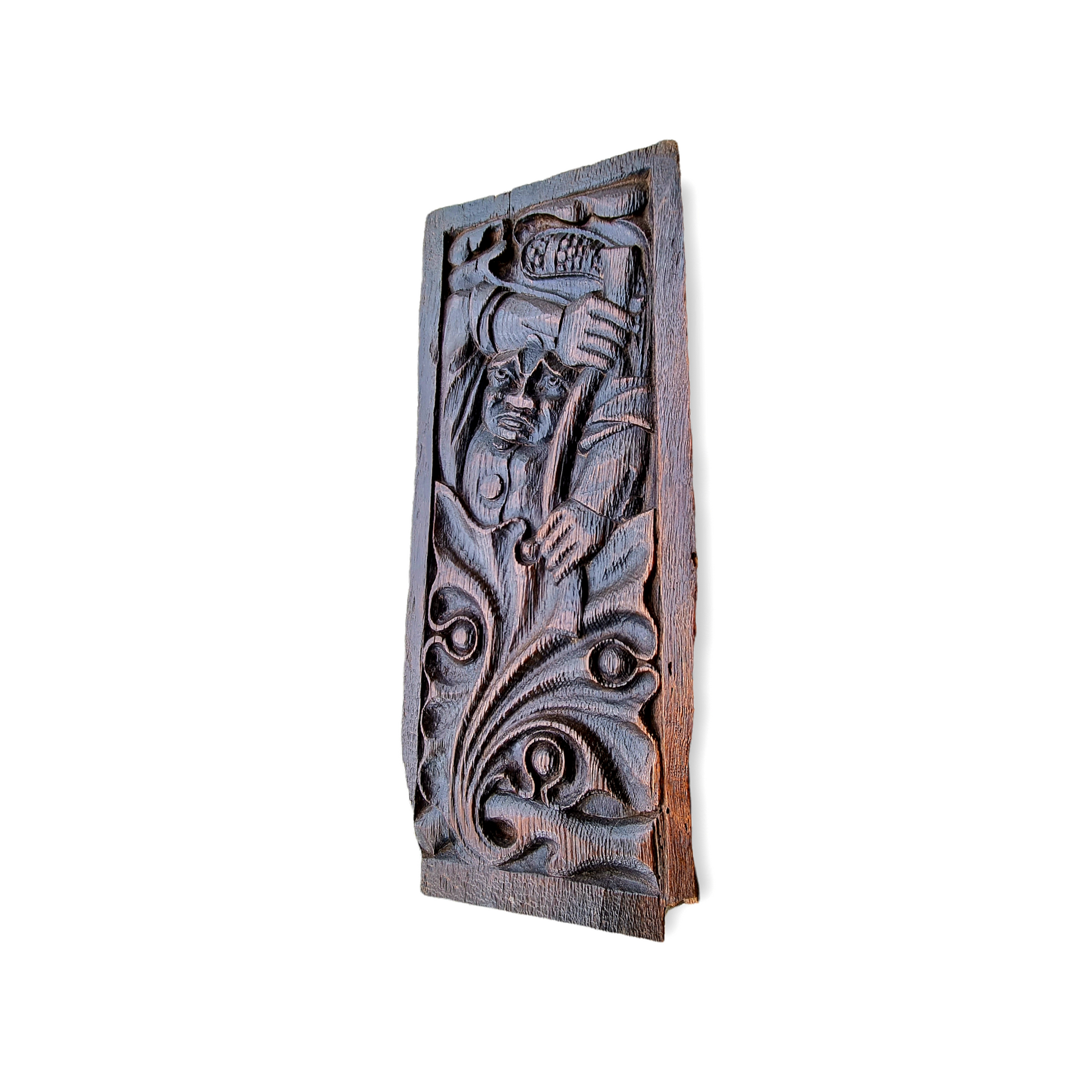 Rare Pair of 16th Century Dutch Antique Carved Oak Panels Depicting Wild Men of The Woods or Woodwose / Wodewose