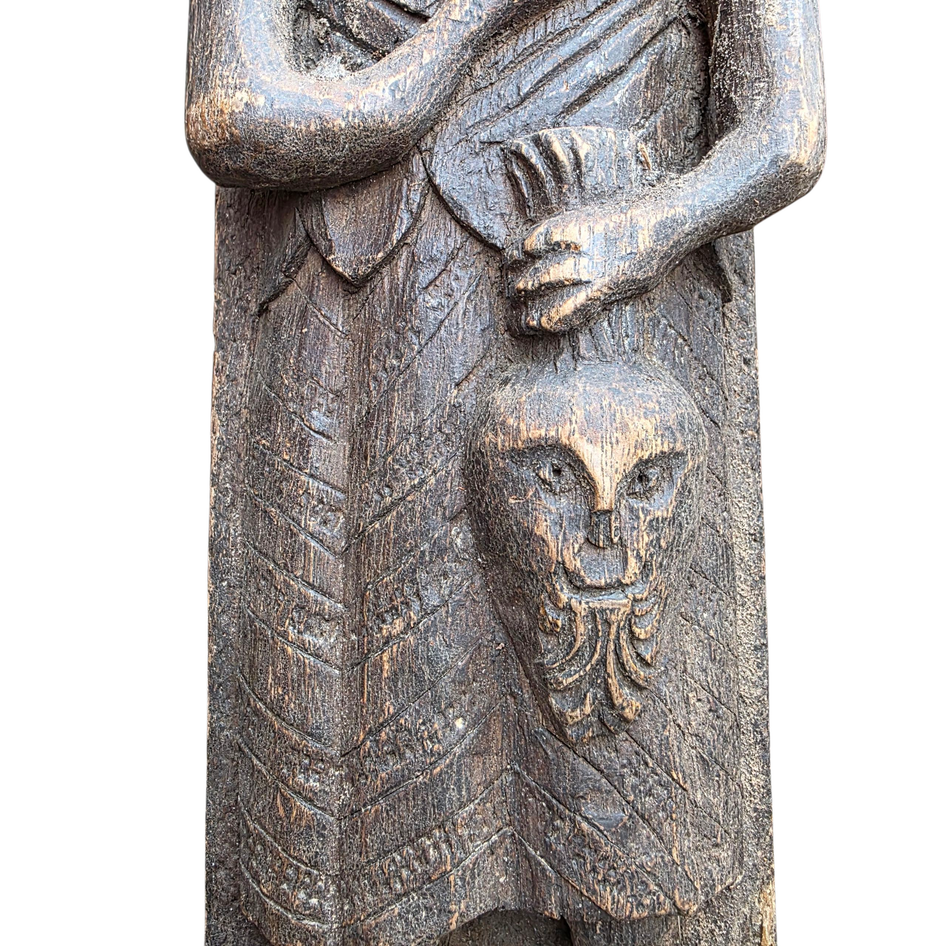 Three Late 16th-Century English Antique Carved Oak Terms / Figural Panels In Barn Found Condition