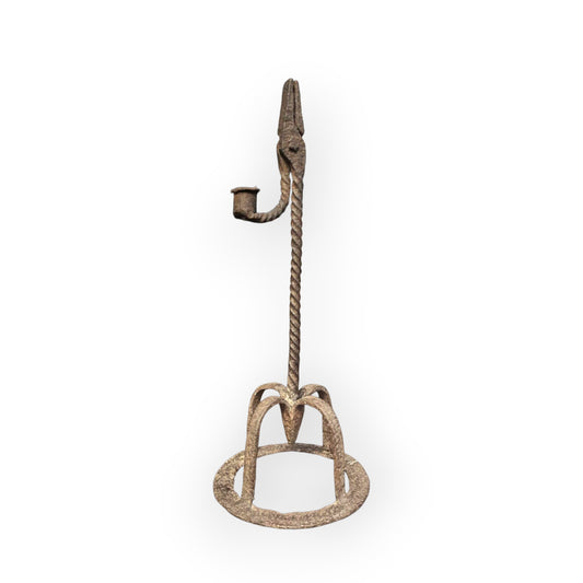 Late 17th-century Irish Antique Iron Rushlight, Supported on a Crown Base